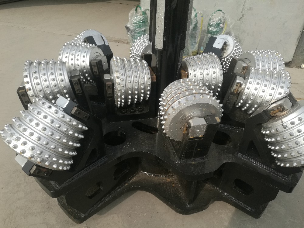 3、把事先與短接桿接好的三牙輪鉆頭用起吊裝至吊置機械手回轉半徑處。